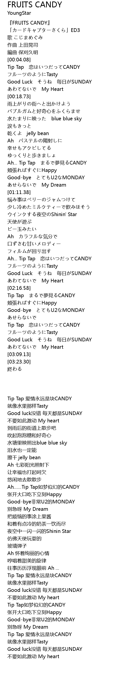 | [02:54.70] | Tip Tap lian CANDY |