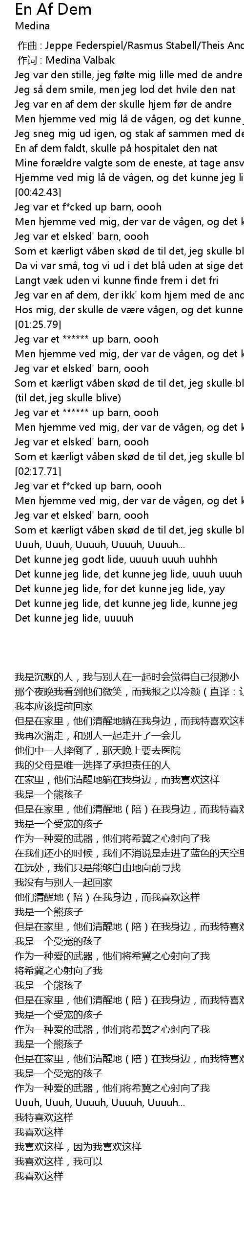 | [02:18.66] | Jeg var et f*cked up barn, oooh |