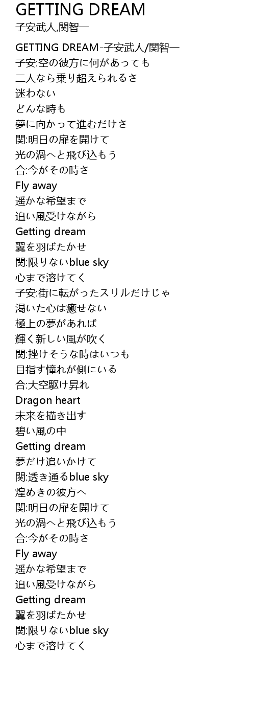 | [00:00.35] | GETTING DREAM zǐ ān wǔ rén guān zhì yī |