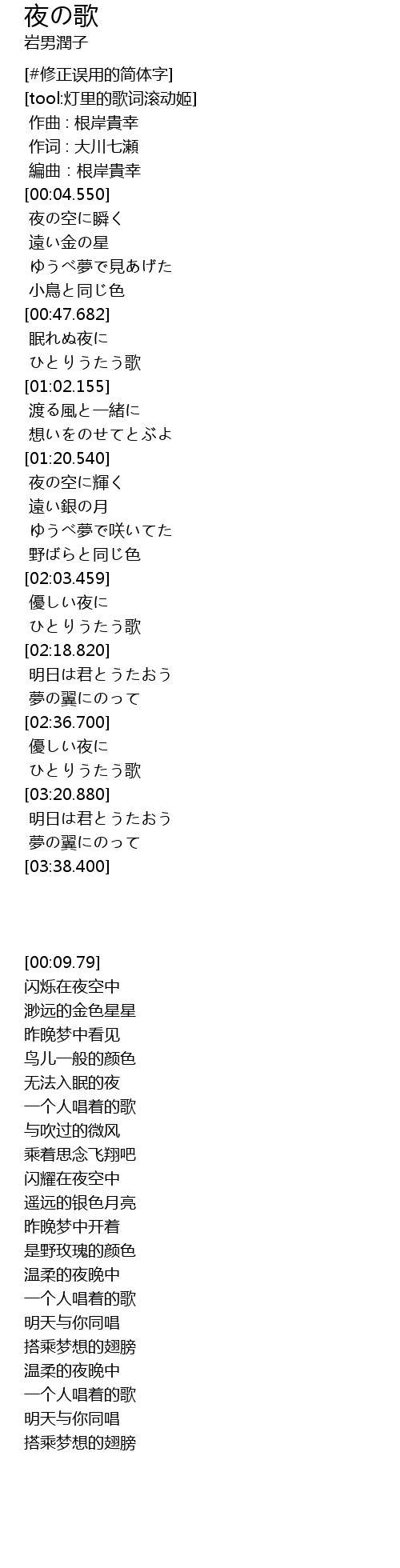 | [01:35.690] | 夜の空に輝く |