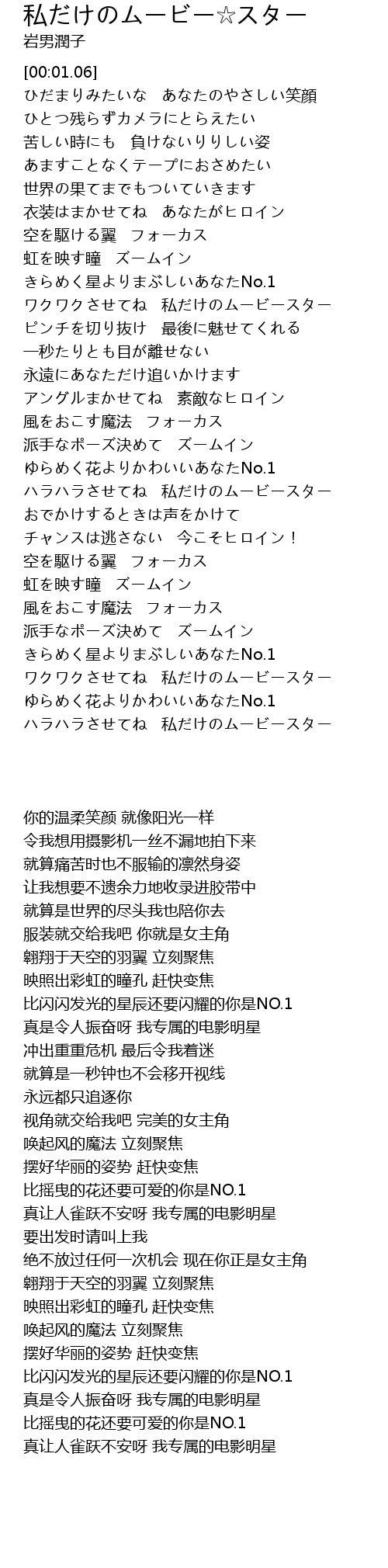 | [04:16.99] | ハラハラさせてね 私だけのムービースター |