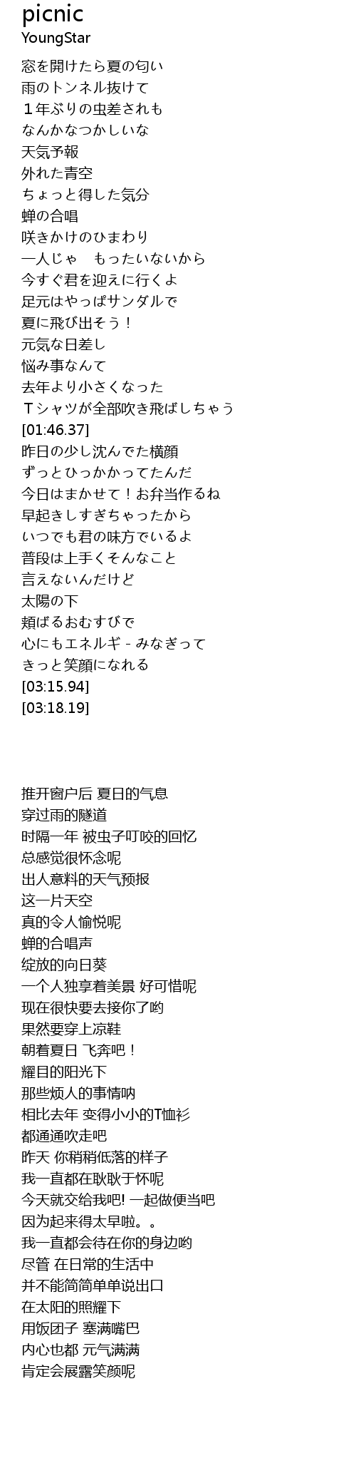 | [00:13.70] | 窓を開けたら夏の匂い |