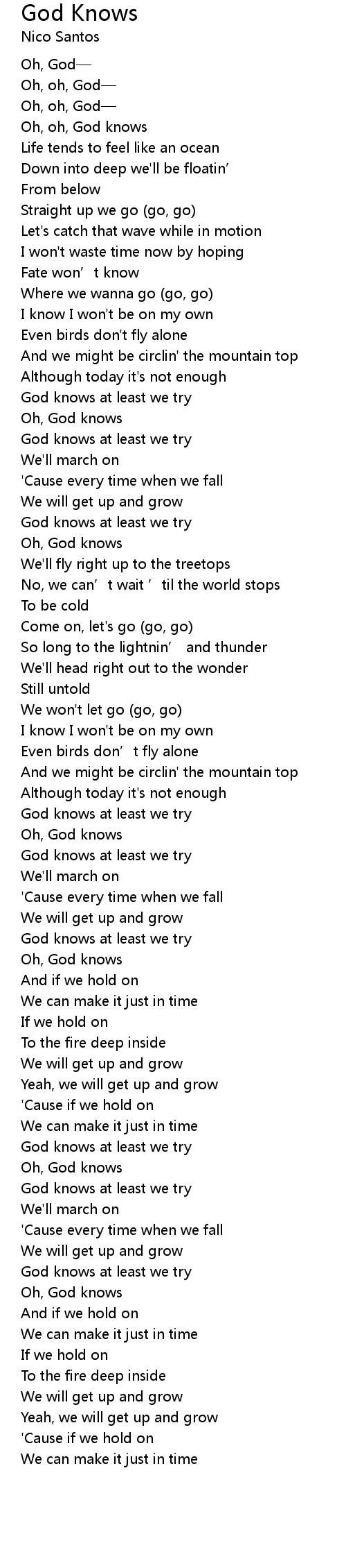 | [00:08.477] | Oh, oh, God knows |