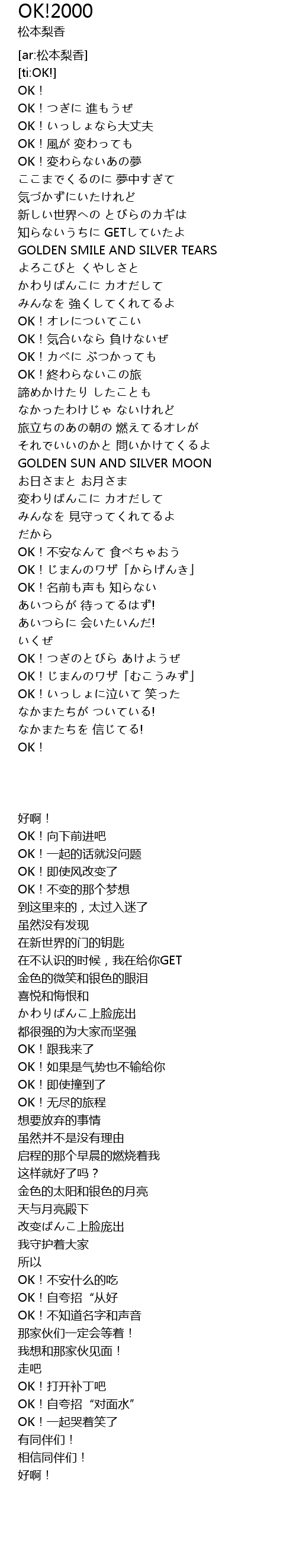 | [03:07.15] | OK!いっしょに泣いて 笑った |