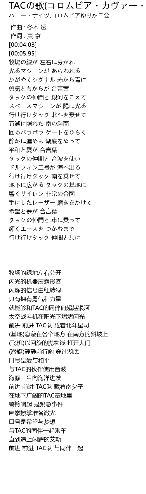 | [00:51.59] | 行け行けタック 北斗を乗せて |
