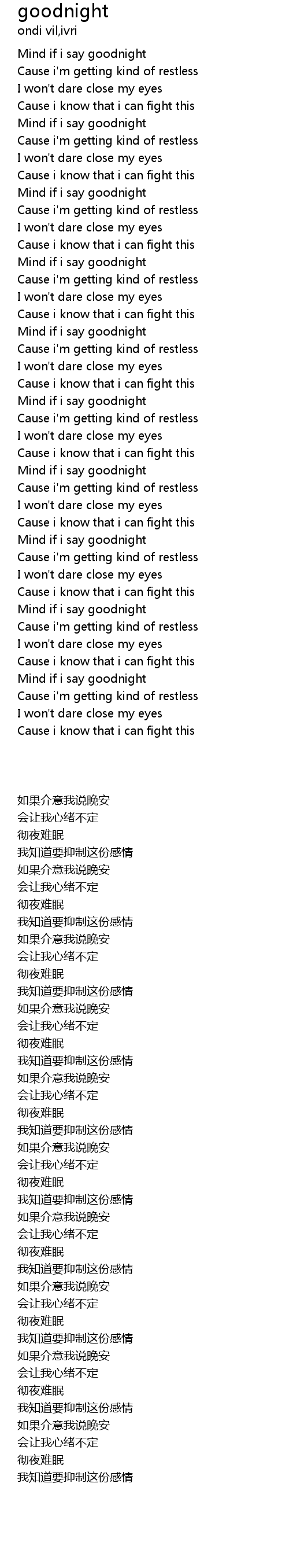 | [00:00.18] | Mind if i say goodnight |