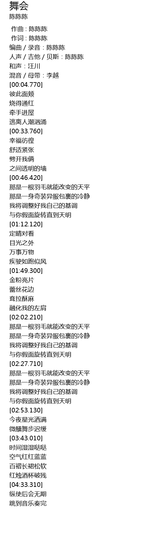 | [00:01.710] | 编曲/录音:陈陈陈 |