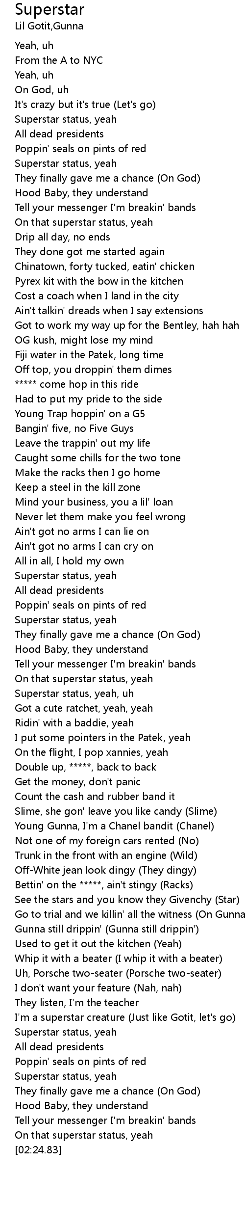 | [02:06.19] | I'm a superstar creature (Just like Gotit, let's go) |