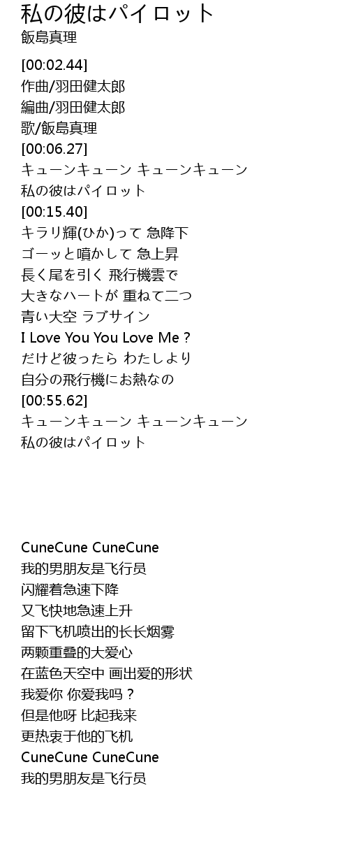 | [00:10.79] | 私の彼はパイロット |