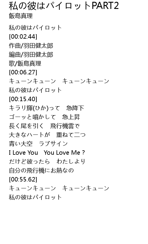 | [00:59.35] | 私の彼はパイロット |