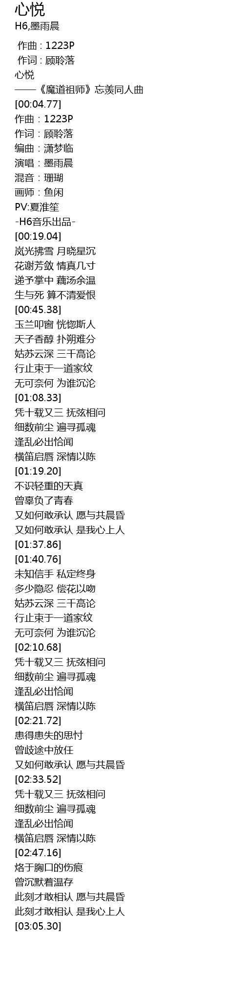 | [00:03.48] | ——《魔道祖师》忘羡同人曲 |