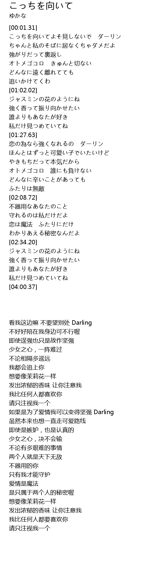| [00:26.62] | こっちを向いてよそ見しないで ダーリン |