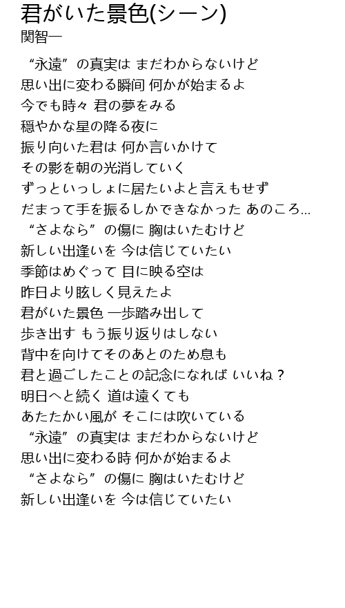 | [04:12.15] | “さよなら”の傷に 胸はいたむけど |