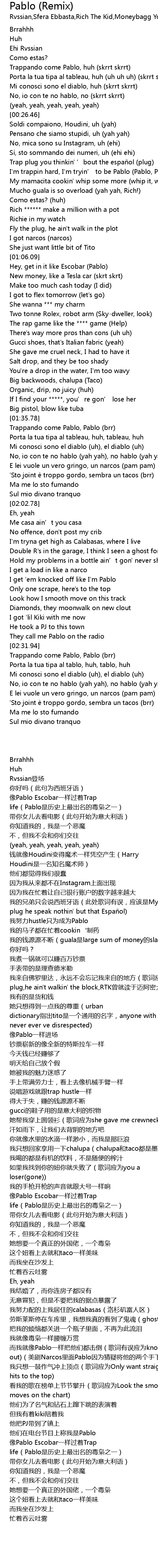 | [00:43.53] | I' m trappin hard, I' m tryin' to be Pablo Pablo, Pablo, Pablo |
