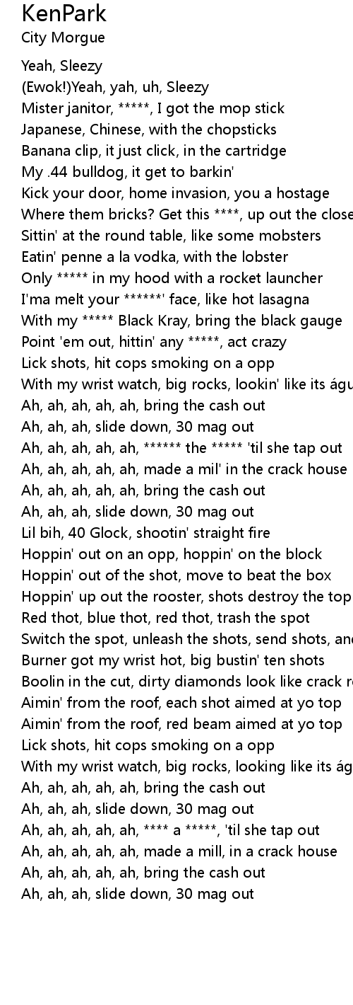 | [00:26.58] | Where them bricks? Get this ****, up out the closet |