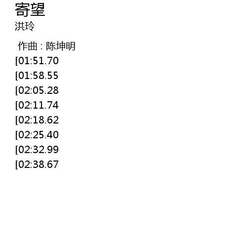 | [01:10.77][02:32.99][03:03.47] | 希望风雨赶紧过 |