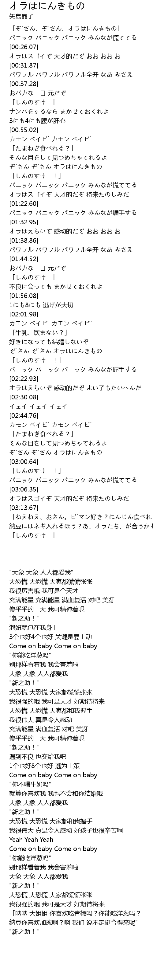 | [02:23.65] | オラはえらいぞ 感动的だぞ よい子もたいへんだ |