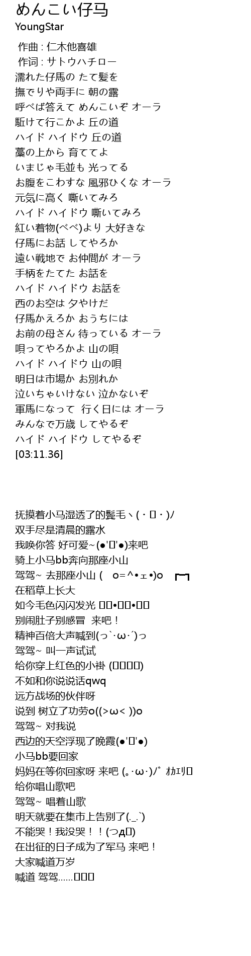 | [02:14.22] | 仔馬かえろか おうちには |