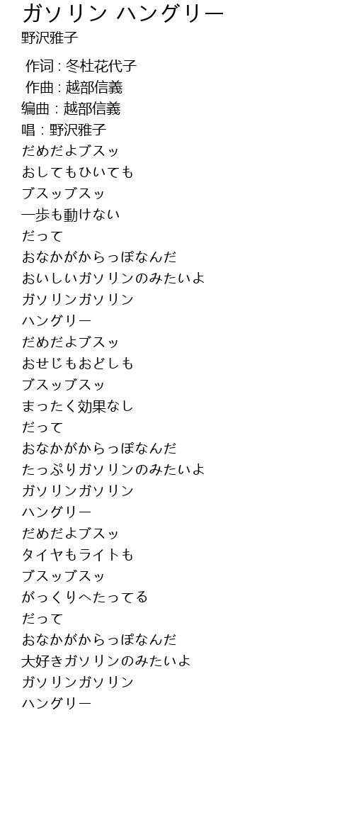 | [00:49.38] | ガソリンガソリン |
