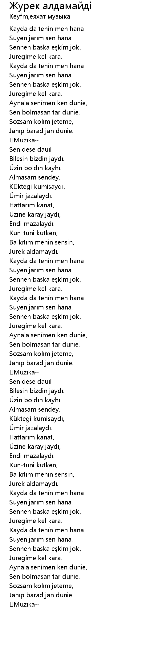 | Song | Журек алдамайдi |