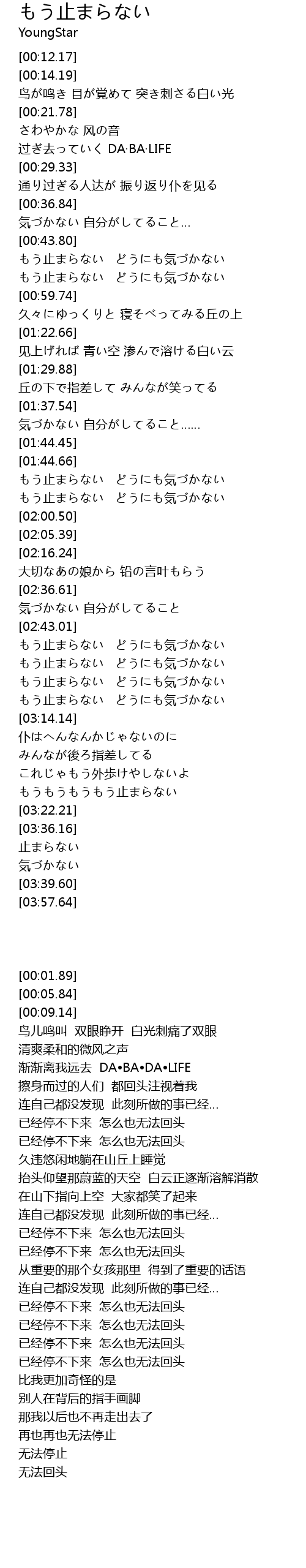 | [03:38.08] | 止まらない |
