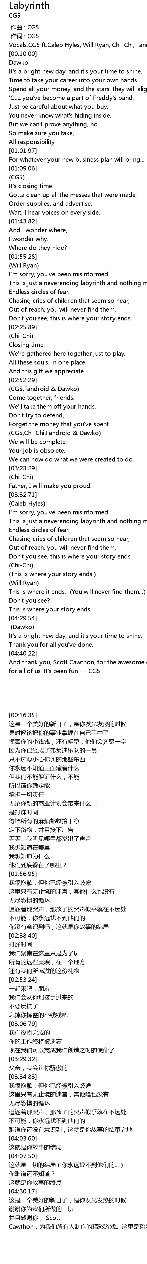 | [04:45.00] | And thank you, Scott Cawthon, for the awesome games that you' ve made for all of us. It' s been fun CG5 |