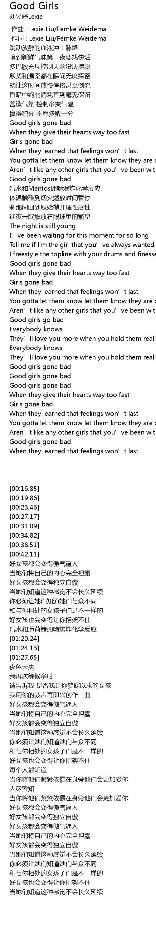 | [01:08.13] | Good girls gone bad |