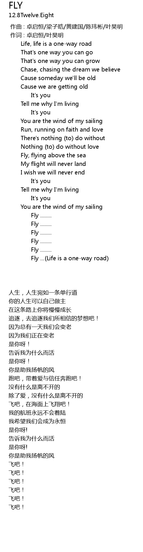 | [05:13.00] | Fly ... Life is a oneway road |
