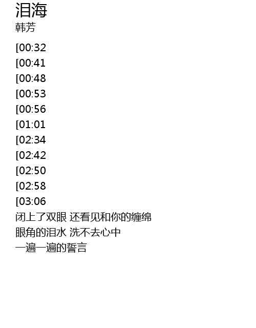 | [03:35][02:34][01:07] | 你怎么舍得让我的泪流向海 |