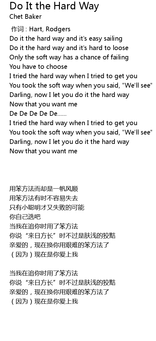 | [00:19.072] | Do it the hard way and it' s hard to loose |