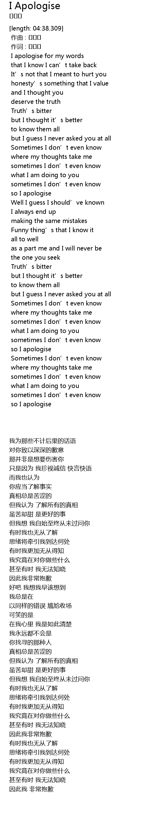 | [00:00.3] | I apologise for my words |