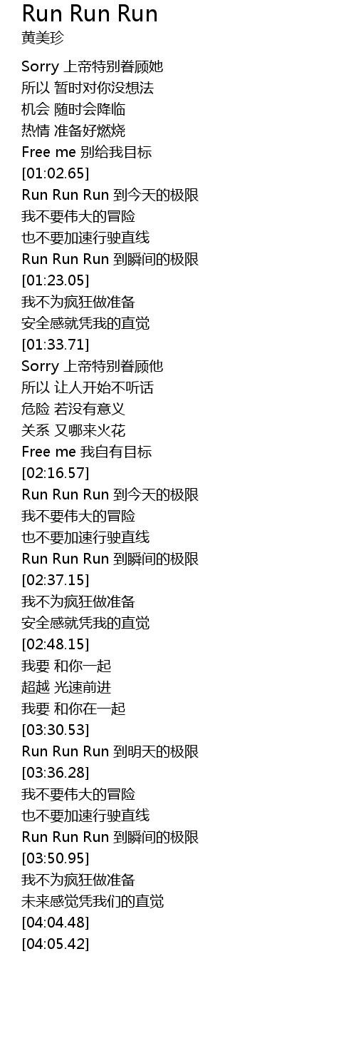 | [03:46.95] | Run Run Run dao shun jian de ji xian |