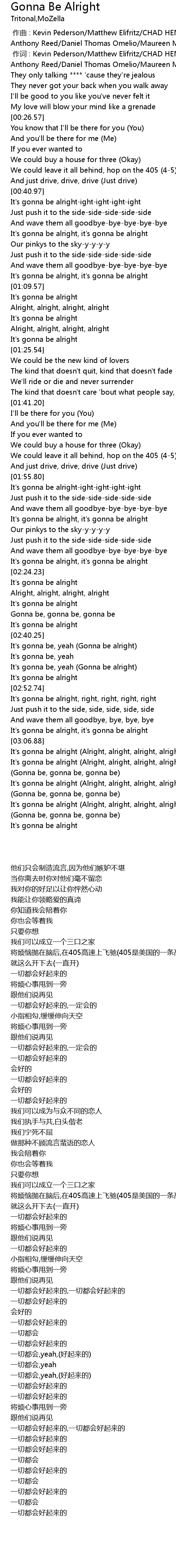 | [03:03.45] | It's gonna be alright, it's gonna be alright |