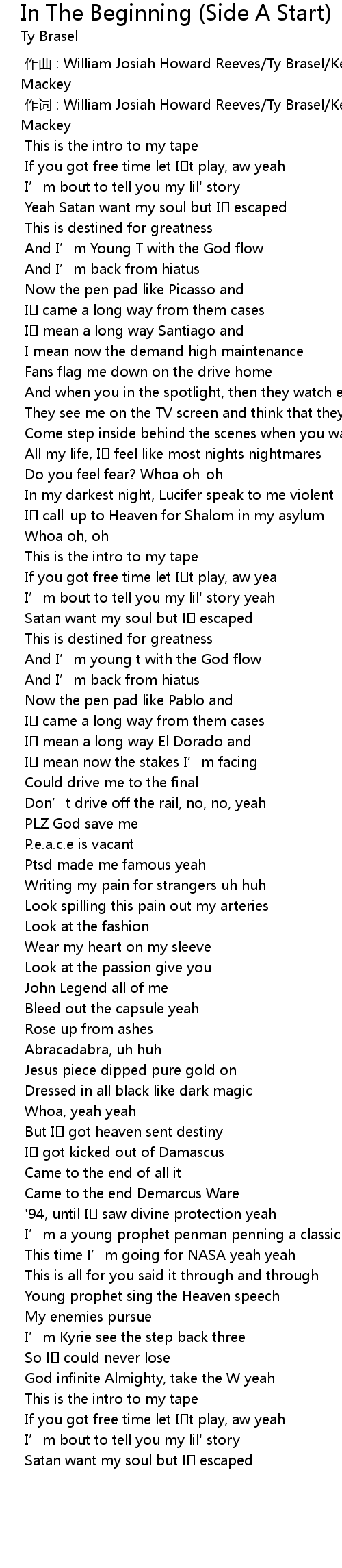 | [00:01.000] | 作词 : William Josiah Howard Reeves/Ty Brasel/Kenneth Christian Mackey |