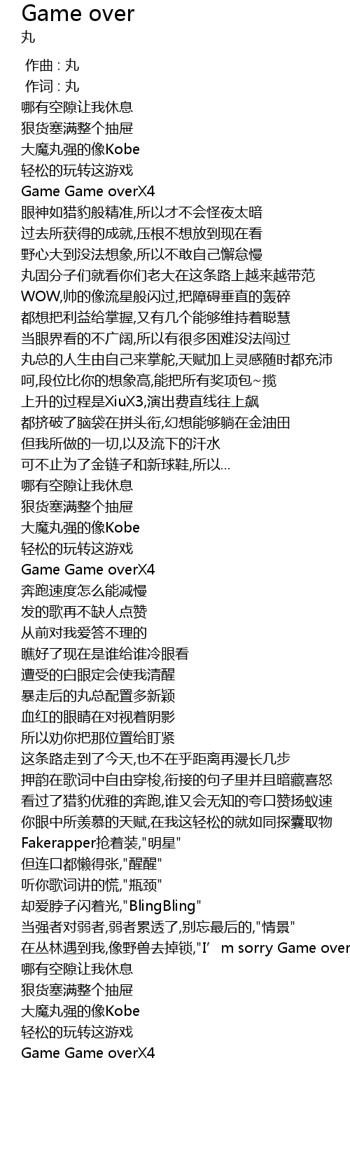 | [02:24.77] | 在丛林遇到我,像野兽去掉锁,"I’m sorry Game over" |