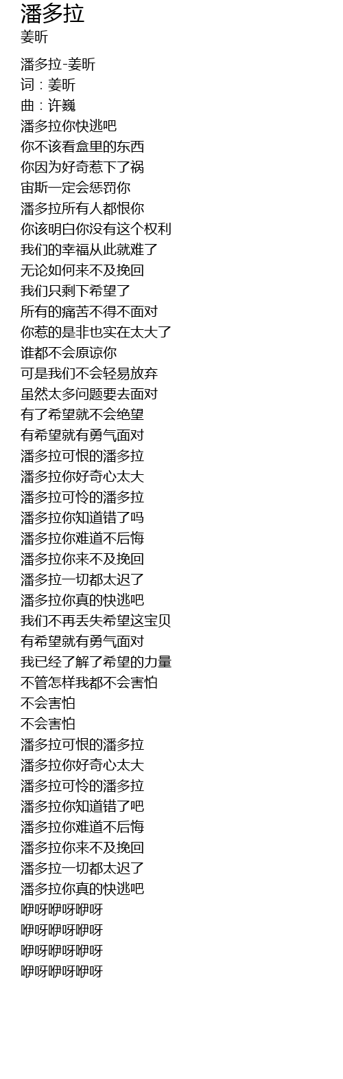 | [02:59.425] | 潘多拉可恨的潘多拉 |