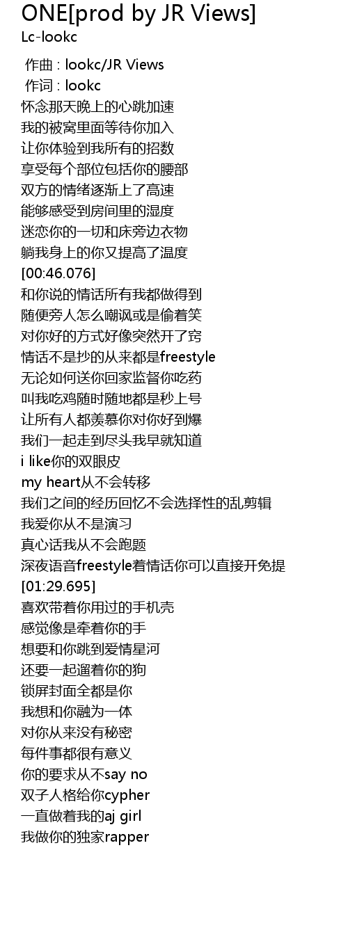 | [00:01.000] | 作词 : lookc |