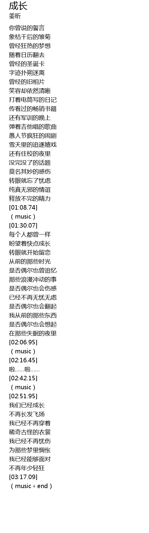| [01:34.77] | 盼望着快点成长 |
