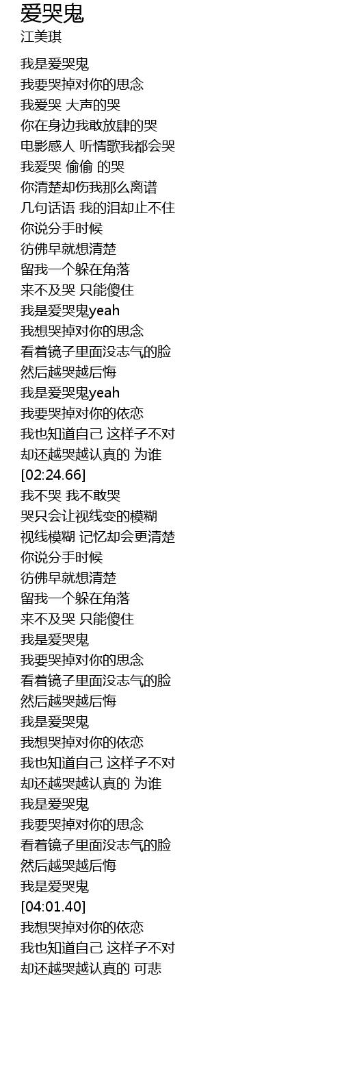 | [03:01.95] | 我是爱哭鬼 |
