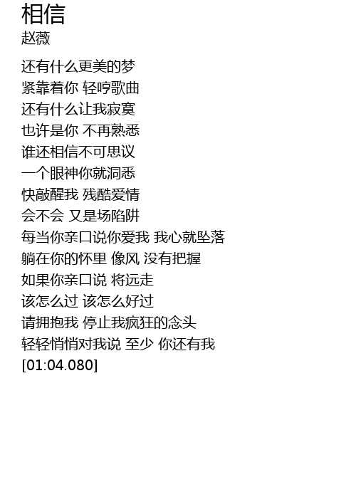 | [00:59.060] | 轻轻悄悄对我说 至少 你还有我 |