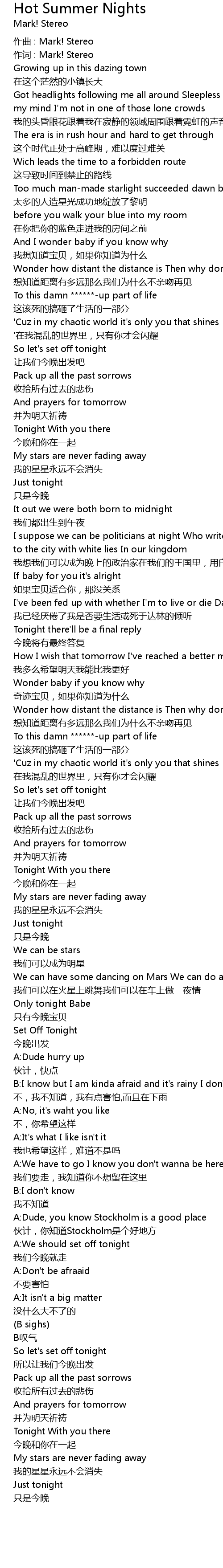 | 作词 : Mark! Stereo | |