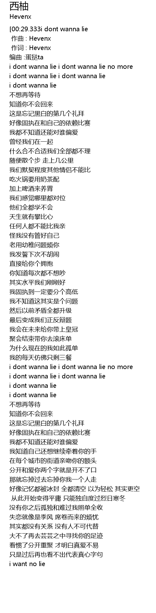 | [00:00.592] | 作词 : Hevenx |