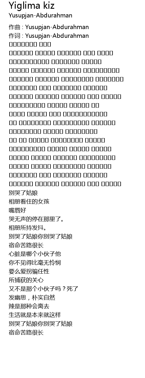 | 作词 : Yusupjan-Abdurahman | |