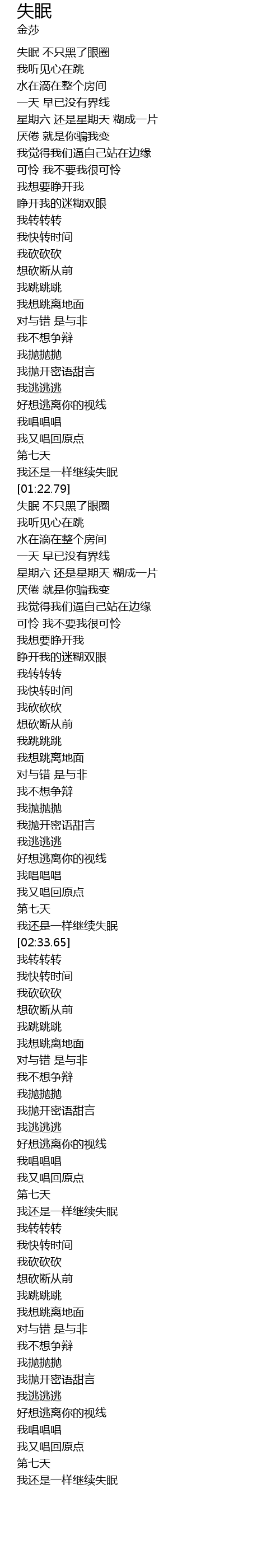 | [01:32.12] | 失眠 不只黑了眼圈 |