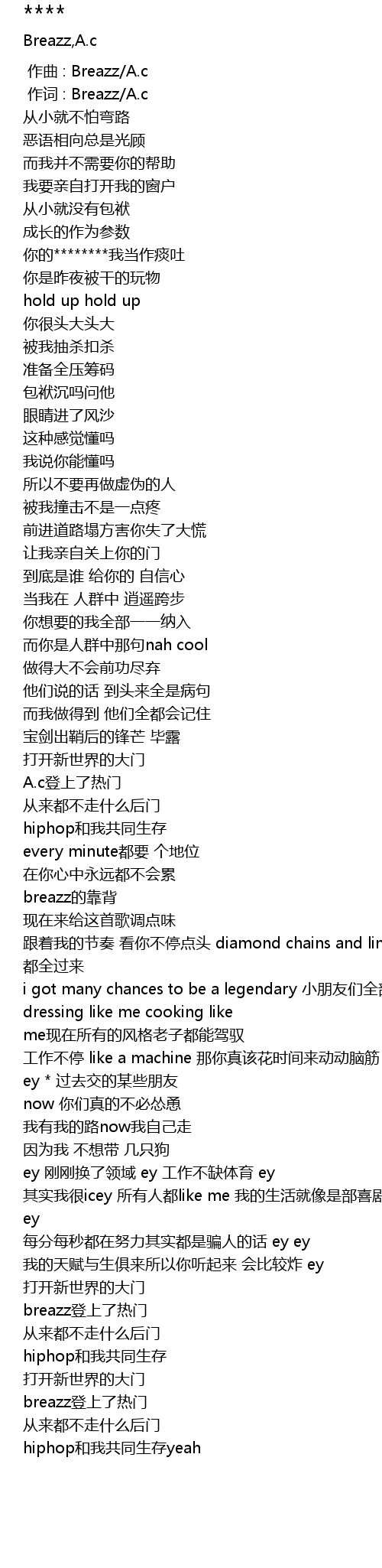| [00:01.000] | 作词 : Breazz/A.c |