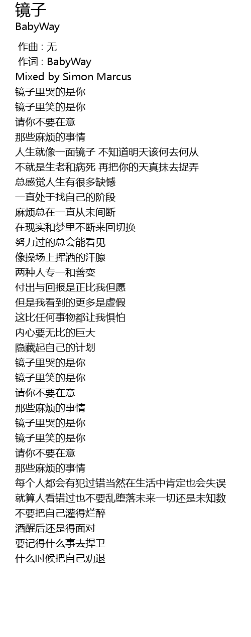 | [00:01.000] | 作词 : BabyWay |