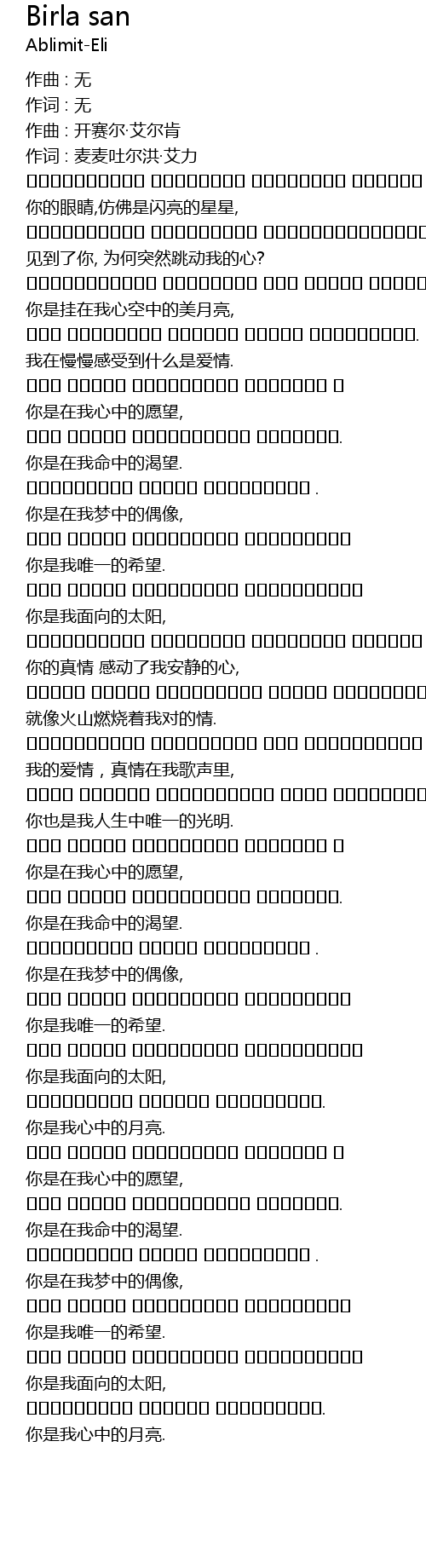 | 作词 : 麦麦吐尔洪·艾力 | |