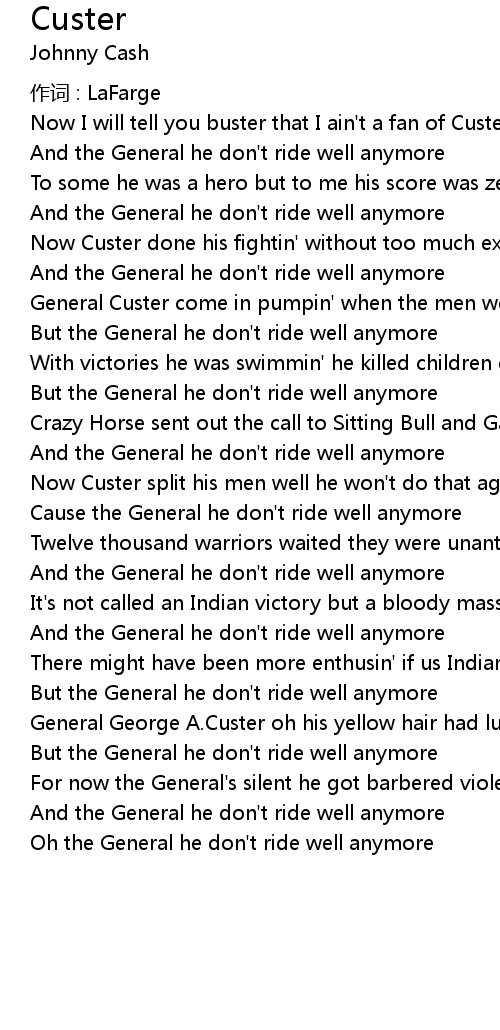 | General Custer come in pumpin' when the men were out a huntin' | |