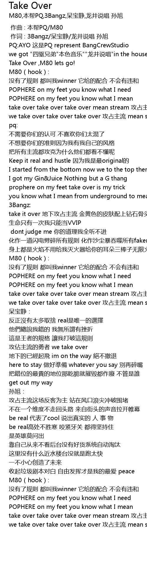 | [01:45.80] | we take over take over take over 攻占主流 mean stream |