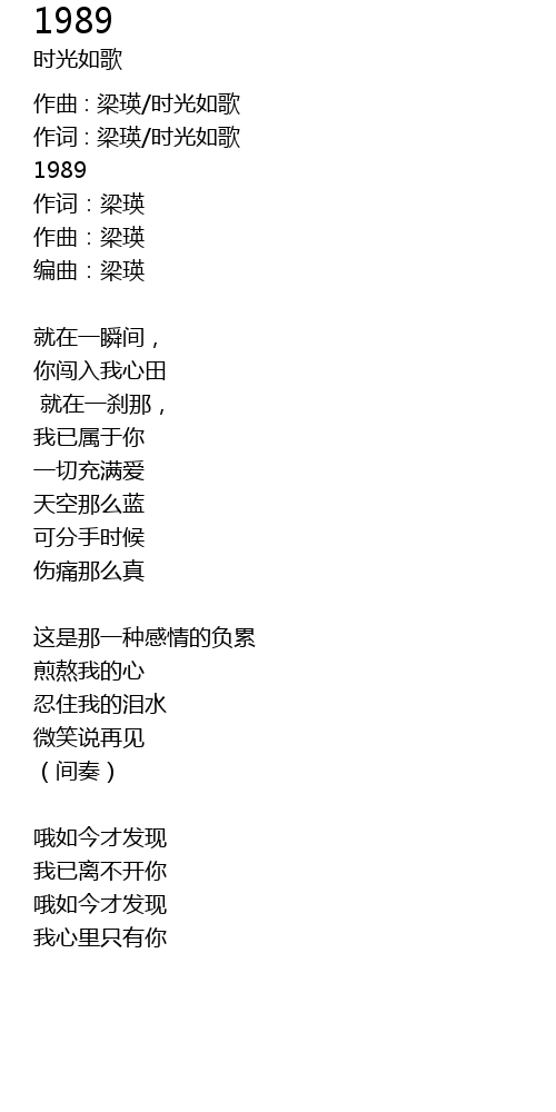 | 作词 : 梁瑛/时光如歌 | |